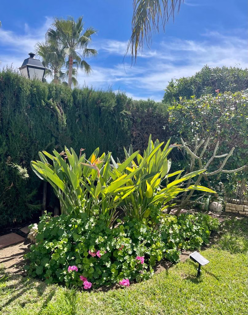 yrt, (tack och lov) men mäklaren var på G och ringde oss några månader senare. Han ville visa oss ett par ställen han trodde vi skulle gilla. Peppe som var i Verbier och åkte skidor, vaskade sin flygbiljett och åkte till Málaga istället. Vi skulle åka till en ö i Thailand och vara borta i fyra veckor, så lika bra att åka ner innan, tyckte mäklaren. Vi pratade via FaceTime då jag var i Stockholm och det första huset mäklaren visade var vårt hus som vi nu bor i. Jag sa direkt till Peppe att det här ska vi ha, jag älskade den uppvuxna trädgården och utsikten till havet, men Peppe var absolut inte alls övertygad om varken hus eller läge så de fortsatte till flera ställen i San Pedro. Inget ställe kunde uppväga det första huset för mig, jag såg bara stjärnor trots det grymt övermöblerade huset. Vi var mitt i en pandemi och stötte på lite motgångar och ett Spanien som stängdeshelt. Den 16 juli 2020 flög vi så äntligen ner och satte vi nyckeln i vår drömbostad i ett stekhett Spanien, trädgården exploderade av blommor och lyckan var total.