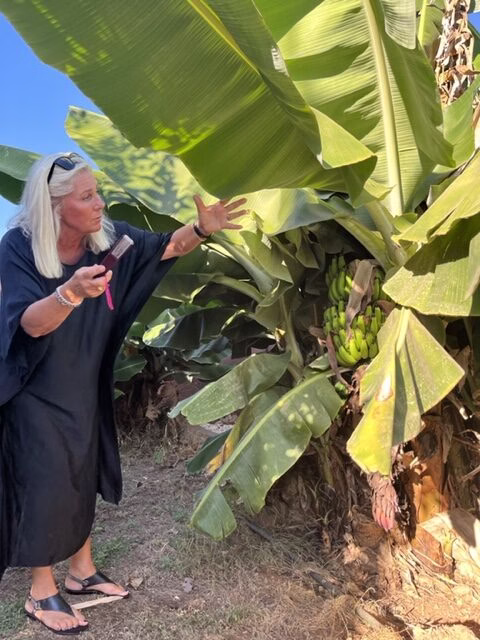Det är en fantastisk historia om hur hon lärt sig allt om odling, och blivit god vän med de som har lärt henne allt hon kan idag. Elisabeth hämtar spillning från mulåsnor hos en vän som är avokadoodlare, av den gör hon sin egen gödsel, en process hon stolt visar oss i en hörna av trädgården. För självklart måste en ekologisk trädgård ha en helt ekologisk gödning. Det är ett hårt arbete och långa arbetsdagar med mycket förberedelse.