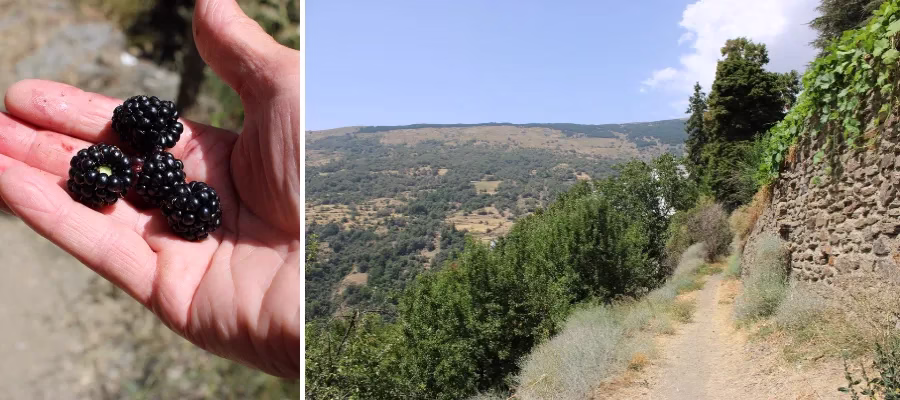 Ingen säger nej till solmogna björnbär under vandringen. Dag 1 vandrar vi från Capileira till Pampaneira.