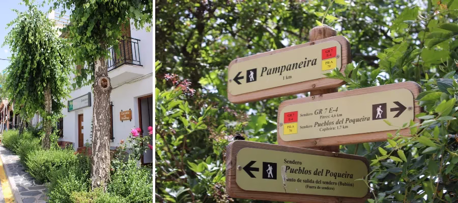 Den lilla mysiga byn Capileira är utgångspunkten. Den kallar sig för Puerta de Sierra Nevada, porten till Sierra Nevada. Här finns ett antal hotell och vandrarhem, hostal. Här möts fjällfolk och vandrare från hela världen.