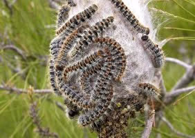 Processionslarver, thaumetopoea processionea, eller Procesionaria del pino, som den heter på spanska, rör sig i långa kolonner sida vid sida, när de söker föda. I Europa förekommer sju arter, men finns i centrala Asien, Nordafrika och södra Europa i synnerhet. De är äkta flockdjur. Under dagen döljer de sig i en stor spindellik boll. Nattetid lämnar de sitt näste och tågar i långa täta kolonner upp i träden på jakt efter föda. De fullvuxna larverna är knappt 2,5 cm långa. Larverna lever i pinjeträd och ser ut som bomullstussar i träden.
