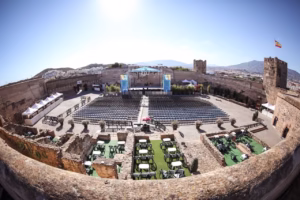 Scen nummer 2, Fundación Unicaja, ligger innanför fästningen som tar 2.400 besökare. Arrangörerna räknar med över 200.000 sålda biljetter sommaren 2023.