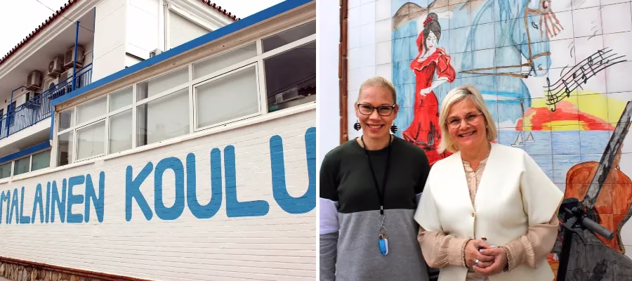 Kati Noro och Hanna Tanttu trivs på sin arbetsplats och med det spanska livet. Det är fjärde omgången Kati jobbar som lärare vid skolan. Hanna kom till skolan inför läsåret 2024/2025.