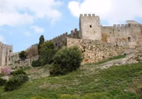 Borgen ligger högt uppe på en höjd med branta klippväggar som avsevärt försvårade ett fiendeangrepp. En enda port leder in till borgens inre som än idag bevarar en fläkt av arabisk by med sina vindlande kullerstensgränder och små stenhus helt inneslutna av den medeltida muren.