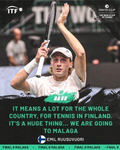 Emil Ruusuvuori som är rankad nummer 72 i världen är Finland tennisstjärna. För första gången någonsin har det nordiska landet kvalificerat sig bland de åtta bästa lagen i världen som gör upp om den åtråvärda Davis Cup-bucklan.