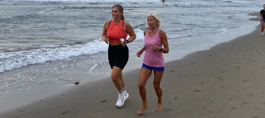 Monica Sterin till höger väljer att springa barfota i sanden