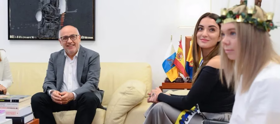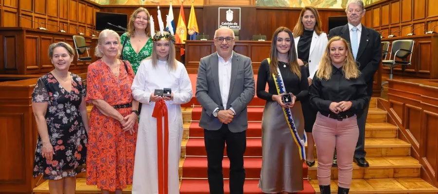 Antonio Morales, president vid institutionen Cabildo de Gran Canaria tog på tisdagen tog emot årets Lucior från Luleå och Santa Lucía de Tirajana.