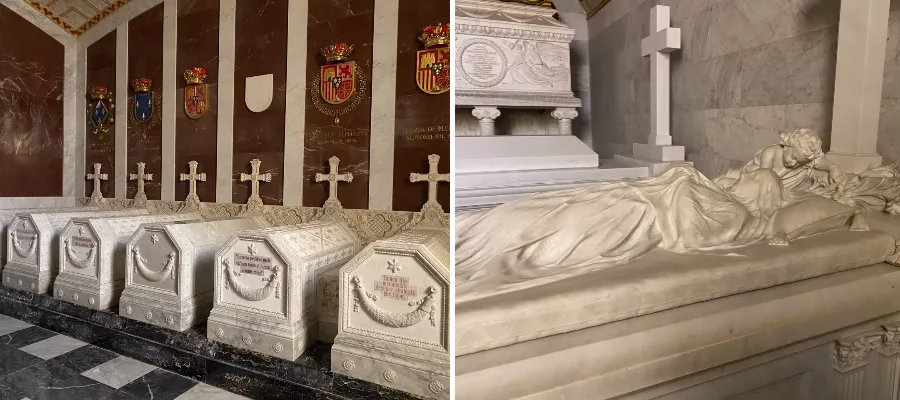 Förutom den kungliga gravkammaren Panteón de los Reyes där samtliga spanska monarker med familj ligger begravda i marmorsarkofager från ätterna Habsburg och Bourbon, förutom Felipe V, så är det biblioteket som framför allt lockar besökare.