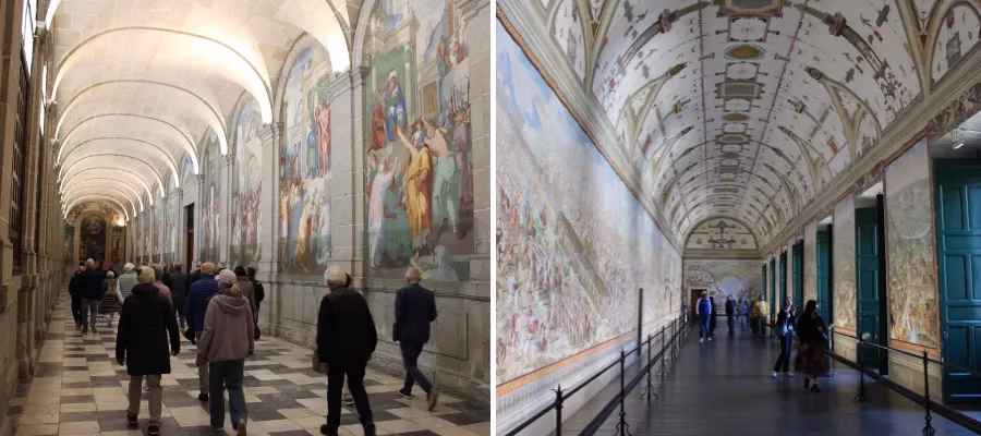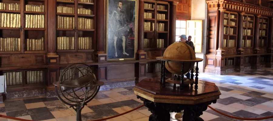 Huvudsalen i det Kungliga biblioteket i El Escorial är ett rektangulärt rum som mäter 54 meter på längden. Uppradade på hyllor av svarvad ek står böckerna, nästan alla från 1500- och 1600-talen.