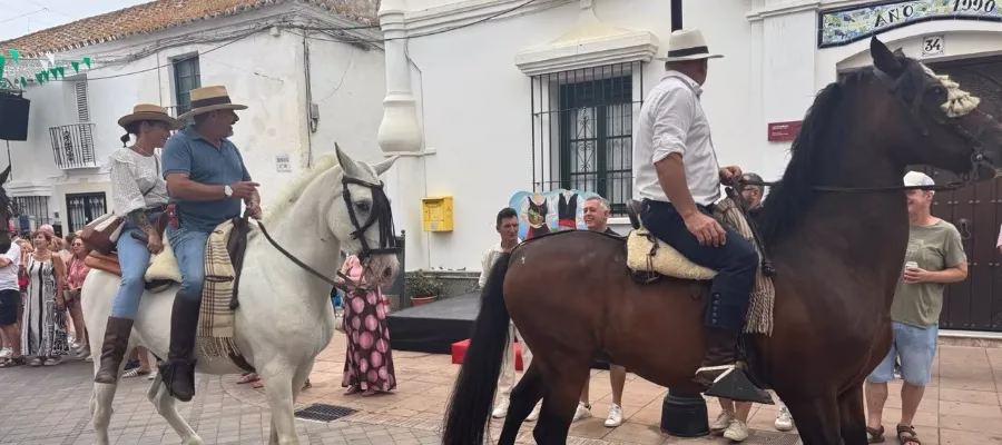 Invånare, besökare och turister blandades längs calle Mar där det var hästparad med medverkande från Peña Caballista i Manilva, plus dans, musik och uppträdanden av Latidos och Compás flamenco.