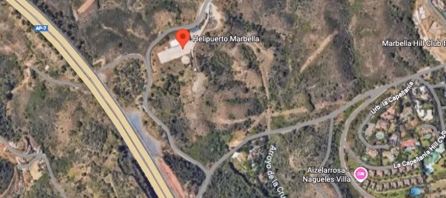 Marbellas helikopterflygplats var ett initiativ av Juan Antonio Roca hade ansvaret för stadsplaneringen. Han var en av huvudmännen i korruptionshärvan Malaya. Roca använde sig av helikopterplattan i området Nagüeles känd som Los Manchones Altos när han skulle resa till sina fastigheter i Spanien med sin egen helikopter.
