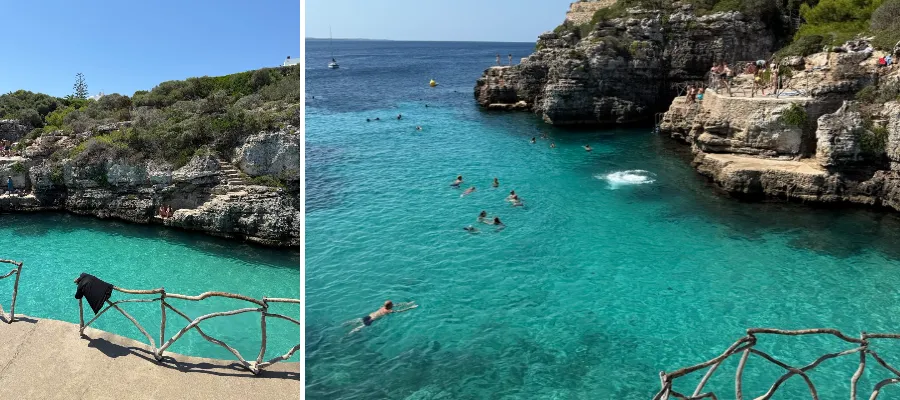 Från vårt hotell i Cala Galdana gick vi en varm men magisk hike till dessa två vikar. Sätt på dig promenadvänliga skor, ta med vatten, kom tidigt – och hoppas att Mojito-mannen är på plats som han var för oss! Dessa vikar ligger intill varandra men vår favorit var Cala Macarelleta.