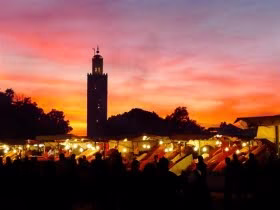 Promenaden avslutas på södra Marockos mest kända torg, Place Jemaa el Fna, torget som har blivit berömt över hela världen. Torget var en gång omlastningsplats för kamelkaravanerna och här samlas än i dag sagoberättare, läkare, tandläkare, skrivare, dansare, spåkvinnor, ja alla som kan tänkas tjäna pengar på berberna som kommer till sin huvudstad från byarna. Här finns tid på egen hand innan vi åker genom den franska stadsdelen Guéliz, där många kända personligheter har bott som t ex den franske modeskaparen Yves Saint-Laurent.