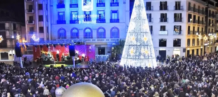 Levande musik med gruppen Señor Mirinda och utdelning av 5 000 påsar med tolv vindruvor och 5 000 partypåsar på plaza de la Constitución. Så firas nyårsafton i Málaga.