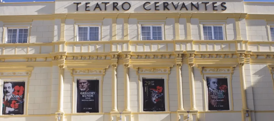 Teatro Cervantes är hemmaplan för Málagas symfoniorkester. Det är toppklass på underhållningen. Det är en uppklädd publik. Det är fest och stil.