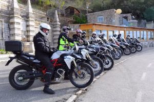 Efter gemensam frukost den första kördagen och ombyte till hojkläder är det en genomgång av motorcyklarna samt lite körtips. Flera av gästerna har ofta varit med tidigare år, så rutterna varieras en hel del för att det inte ska bli upprepningar. För som sagt, det finns ju gott om alternativa kurviga vägar här nere.