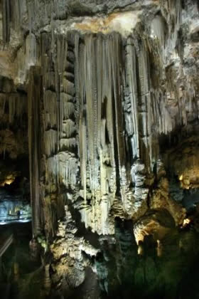 Nej, i personens ögon var det inte naturen som hade skapat de enastående stalaktiter och stalagmiter som besökarna förundras över i det imponerande grottsystemet. Med all respekt för morerna fantastiska byggnadskonster som vi ser lite varstans i Spanien så var det knappast de som fabricerade de stalaktiter eller hängande, istappsliknande formationer som Nerjas grottor är fyllda av.