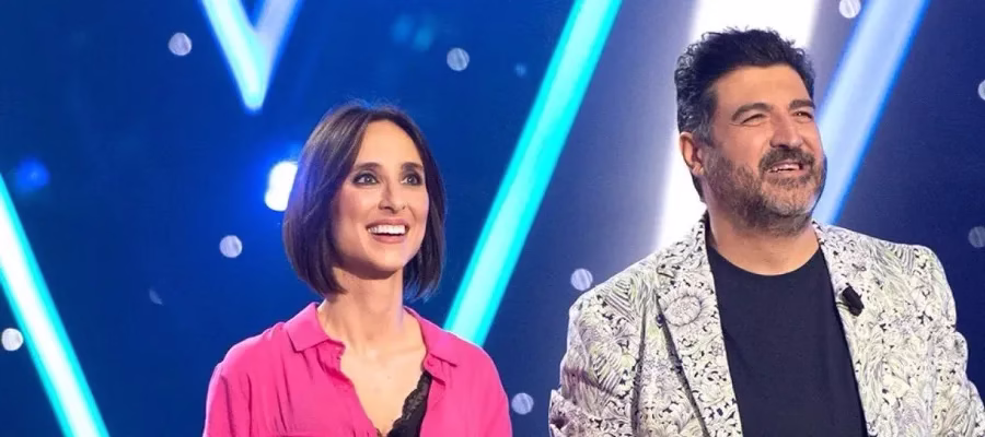 Julia Varela och Tony Aguilar, programledare i spansk statlig tv under Eurovision. (Foto: RTVE)