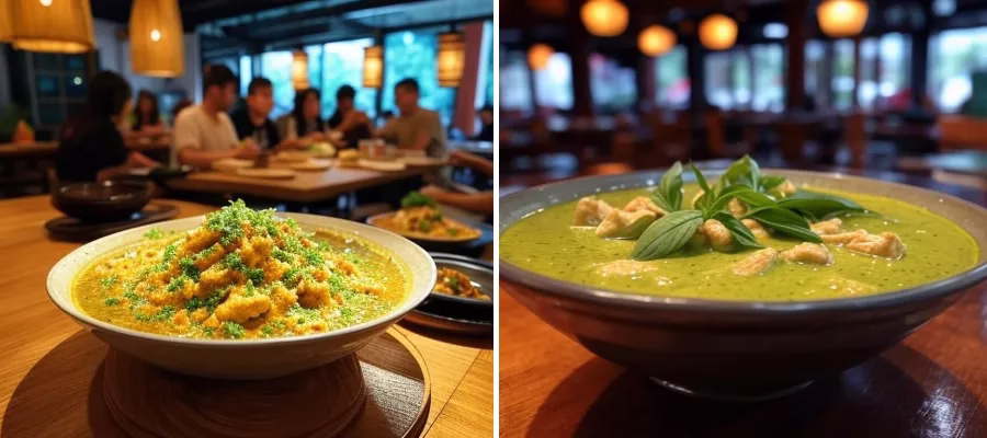 Siam Thai är öppen varje dag för lunch och middag. Man erbjuder en lunchmeny med valmöjligheter, där förrätt är vårrullar eller mixad thai sallad. Till huvudrätt serveras bland annat grön kyckling curry med grönsaker eller fisk med thai chilisås och jasmin ris.