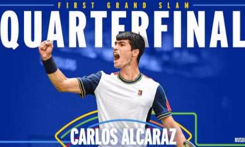 Efter att ha vunnit mot tysken Peter Gojowczyk (5-7, 6-1, 5-7, 6-2 y 6-0) i US Open är Alcaraz den yngste som når kvartsfinalspelet i en Grand Slam-turnering sedan 1990 (Michael Chang)