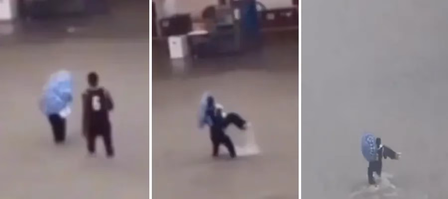 Un hombre acude al rescate de una mujer asustada que se queda atrapada y la coge en brazos en medio de la tromba de agua en Málaga