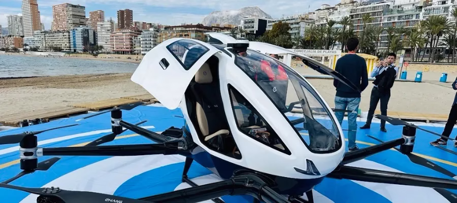 Förra veckan skrevs historia i Benidorm då staden blev skådeplats för ett första test där en luftburen taxi flög över staden tillsammans med flera drönare.