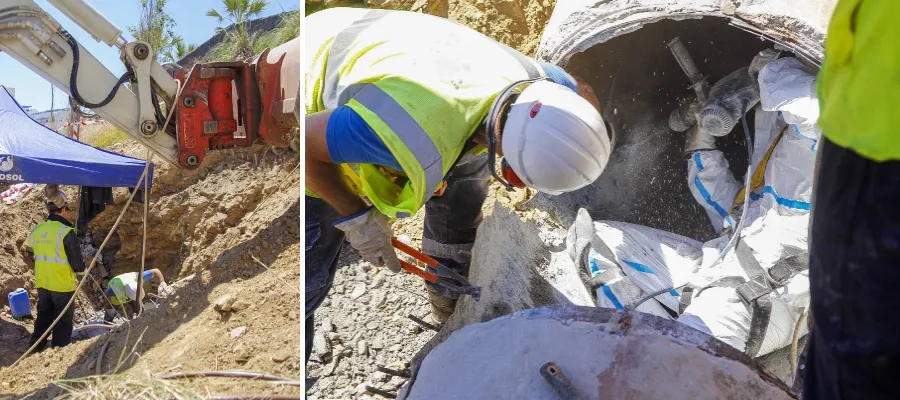 Att laga rörledningen som sprang läck i Benalmádena i måndags tar tre dagar att åtgärda, meddelar Acosol. Under tiden får invånarna dricksvatten från andra ledningar.
