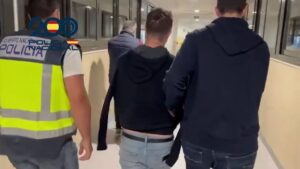 Här grips en av de båda männen. Nu är samtliga två försvunna. (Foto: Policia nacional)