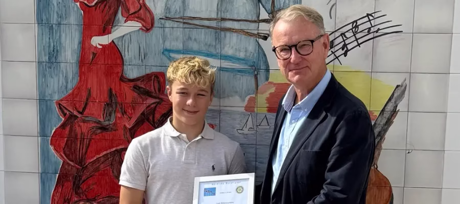 De nordiska rotarianerna på Solkusten delar ut stipendiat till en föredömlig elev som gjort den bästa förbättringen av sina skolresultat vid svenska, norska och finska skolan.