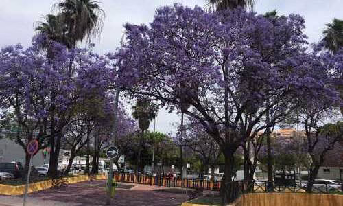 Bildtext: Så här vackra är jakarandaträden vid Plaza de los Niños i Fuengirola.