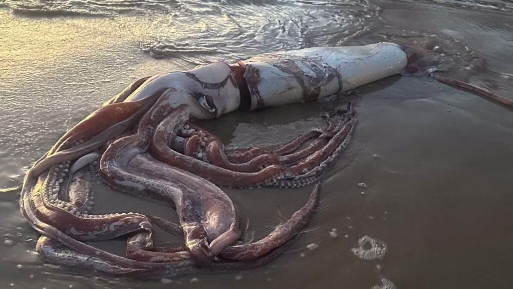 En 10 meter lång bläckfisk har strandat i Llanes, i Asturien.