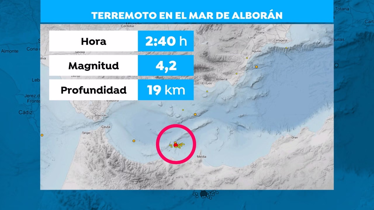 Ett jordskalv som mätte 4,2 och som hade sitt epicentrum i havet mellan Spanien och Marocko inträffade natten till måndagen klockan 02.40.