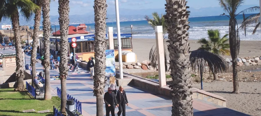 Gatuförsäljarna står på gränsen till Torremolinos längs Paseo marítimo de Benalmádena.