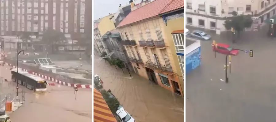 Málaga centrum rapporterar om översvämningar utmed avenida de Andalucía vilket även påverkar shoppingvaruhuset El Corte Inglés. Banker har stängt och det gäller även många livsmedelsbutiker och domstolar som stängt för dagen.