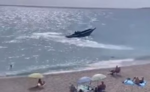Männen hoppade i vattnet några meter från stranden medan båten drog på full gas ut till havs igen.