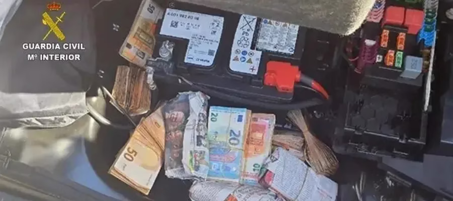 Under en rutinkontroll i Ciudad Real hittade poliser från Guardia Civil 133 133 euro i kontanter gömda bredvid ett bilbatteri i bagageluckan. Mannen som körde bilen var ensam i fordonet när det inträffade.