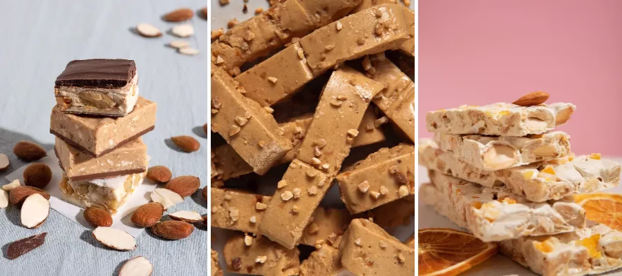 En annan godsak med arabiskt ursprung är turrón, som är helt annorlunda. Den säljs i större fyrkantiga bitar. I den är de viktigaste ingredienserna mandel, socker, honung och ägg. En del görs med äggvitor, andra med äggula. Ibland används grädde och nötter. Bittermandel kan ingå och även andra smaktillsatser.