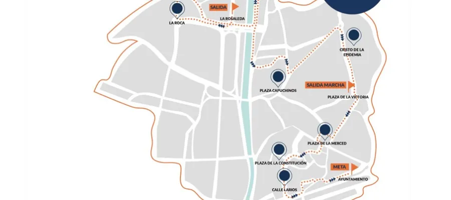 Det sju kilometer långa motionsloppet går genom Málagas centrala gator från La Rosaleda-stadion klockan 9.30 till Avenida Cervantes.