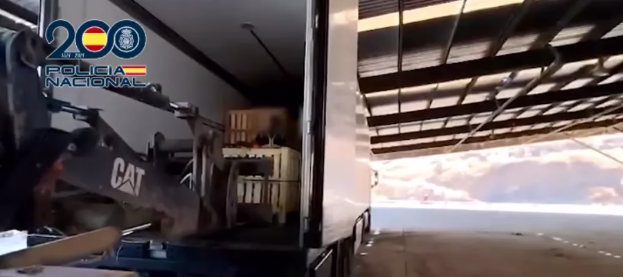 När lastbilen genomsöktes hittades de olagliga substanserna dolda i små bollar av plast som skulle få dem att smälta in bland den riktiga frukten som fanns i lådorna.