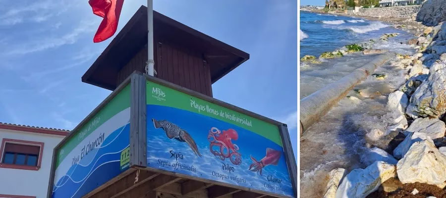 Det är röd flagg och badförbud som gäller på stranden El Charcón i Mijas Costa efter att ett avloppsrör gått sönder. Två meter av röret är trasigt.