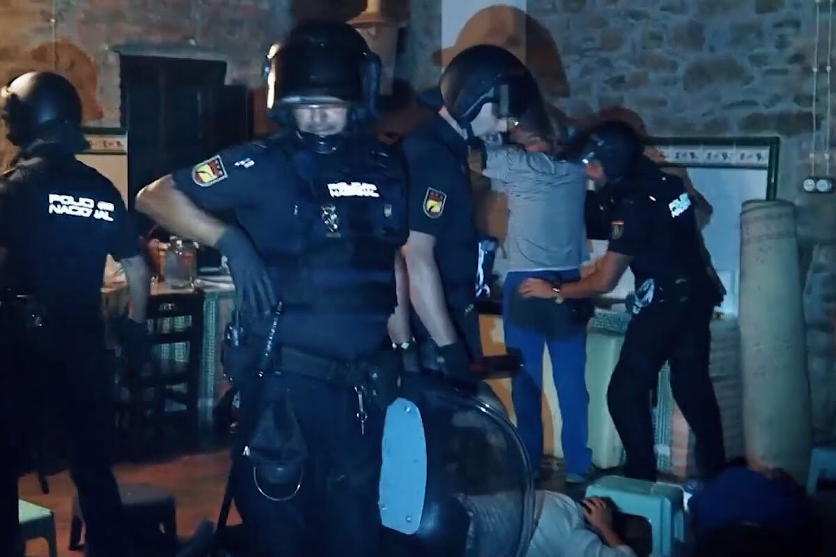 50 nationalpoliser från Madrid ingick i tillslaget. Polisen hittade de bara 3,3 gram hasch och 1,61 gram marijuana.