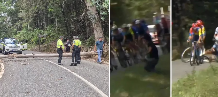 Några av cyklisterna körde dock in i varandra som den spanske cyklisten Javi Romo som föll. Polisen grep senare mannen för att ha gjort olaga intrång och orsakat att en annan cyklist också föll, visar bilder på Teledeporte.