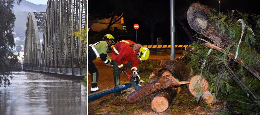 Guadalhorcedalen och västra Costa del Sol drabbades extra hårt i stormen som drog in över kusten. Röd vädervarning utlystes på lördagskvällen och klockan 21.16 skickade larmtjänsten EMA 112 nödmeddelande till mobiltelefoner i 27 kommuner i provinsen Málaga som gällde fram till klockan 04 i söndags morse.