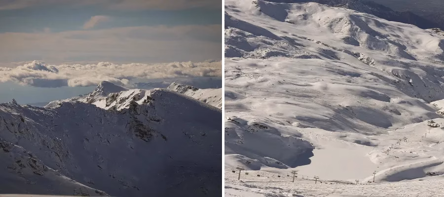 I Sierra Nevada är snötillgången extra gynnsam efter all nederbörd som kommit och som fallit som snö i den höglänta terrängen.