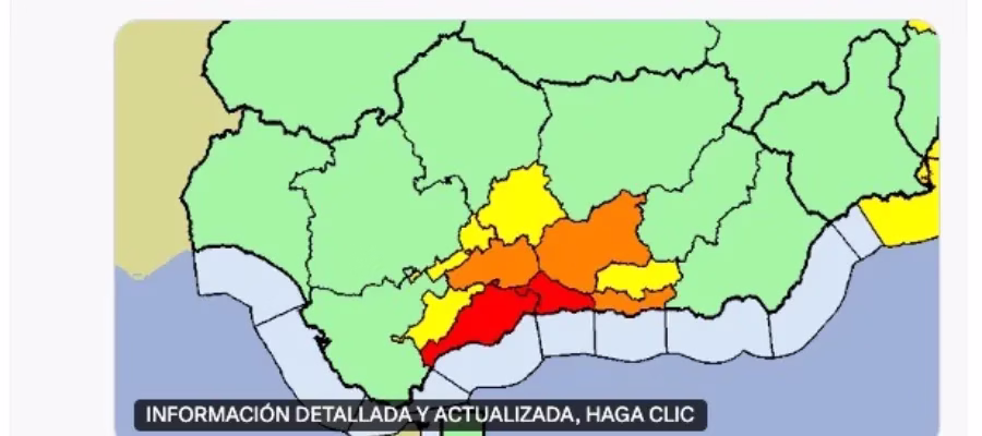 Pasa a rojo – riesgo extremo- el aviso por ️ en Málaga capital, Sol y Guadalhorce y Axarquía.