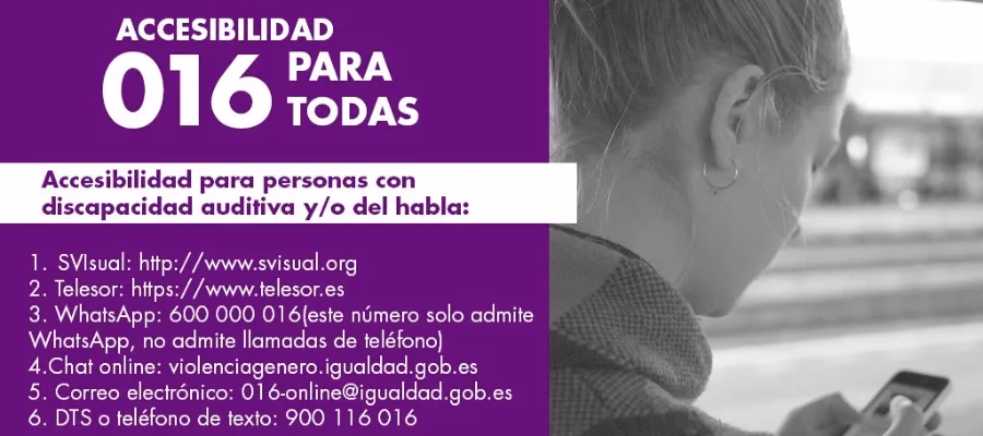 Du kan också rapportera incidenter – oavsett om du är offer, familjemedlem eller vittne – genom e-post: 016-online@igualdad.gob.es