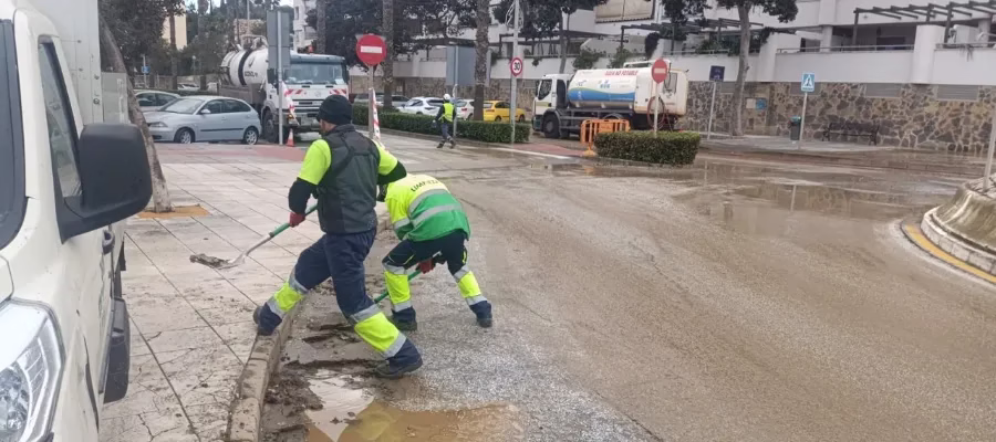 Carmen Díaz Ruiz, kommunalråd med ansvar för renhållning i Fuengirola skriver på X att att från de tidiga morgontimmarna har renhållningsarbetare arbetat med att återställa flera vägar i området Miramar Norte efter det stora läckaget.