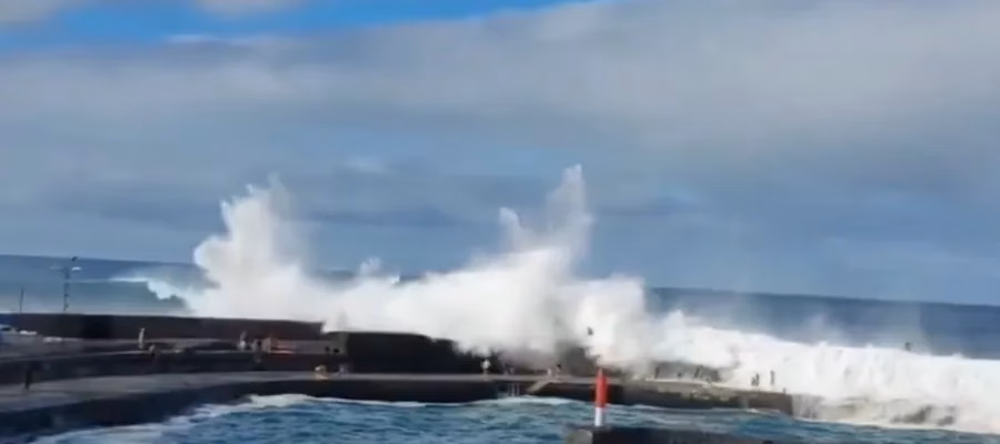 Det rapporteras om fyra meter höga vågor vid flera platser runt Teneriffa. Inte minst norra delen av ön vid semesterorten Puerto de la Cruz. Här finns jättepooler som har byggts på grund av att det är svårt att bada i havet.